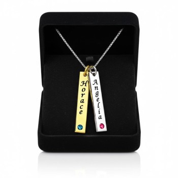 Engraved Name Bar Necklace In Sterling Silver with Birthstone