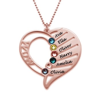 Heart Mother Birthstones Necklace Gold Plated Silver