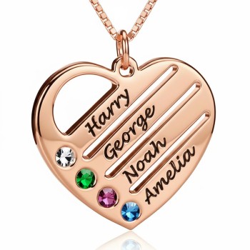 Engraved Heart Mother Birthstones Necklace