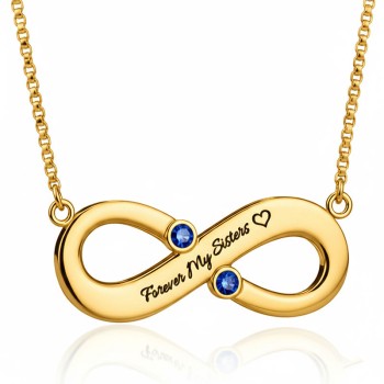 Engraved Infinity Necklace - Two Birthstones