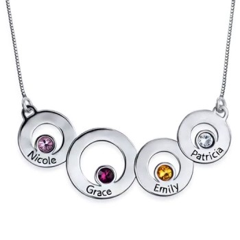 Mother's Disc and Birthstone Charm Necklace