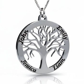Tree Of Life Necklace Engraved Names in Silver