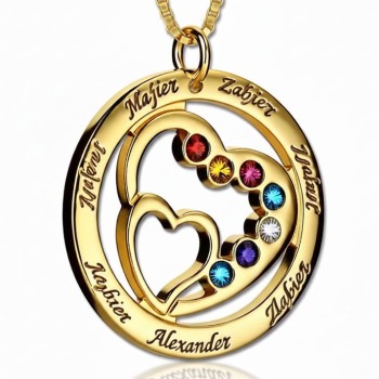 Heart in Heart Birthstone Name Necklace Gold Plated