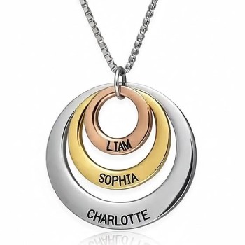 Three Disc Necklace for Mothers Silver Rose and Gold