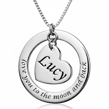 Engraved Circle Necklace Grandma Heart Pendant