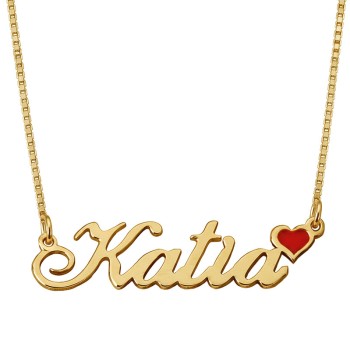 Small Heart Classic Name Necklace Gold Plated
