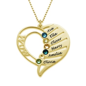 Heart Mother Birthstones Necklace in Gold Vermeil