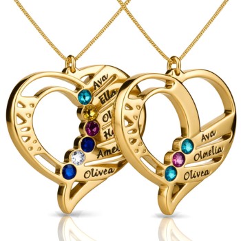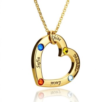 Heart Mother Birthstones Necklace Gold Plated Silver