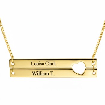 Engravable Heart Two Bar Necklace 18ct Gold Plated