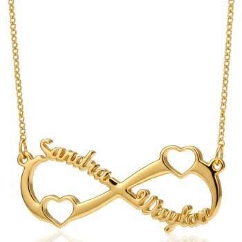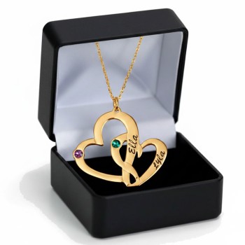 Heart in Heart Birthstone Name Necklace Gold Plated