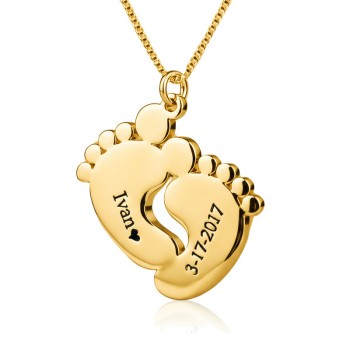 Personalised Baby Feet Necklace 18ct Gold Plated