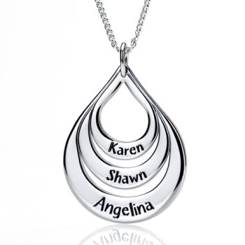 Engraved Drop Shaped Necklace Sterling Silver