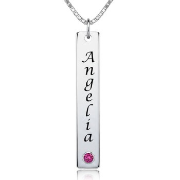 Nameplate Bar Necklace with Birthstone Silver