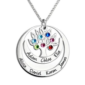 Engraved Personalised Family Tree Birthstone Necklace
