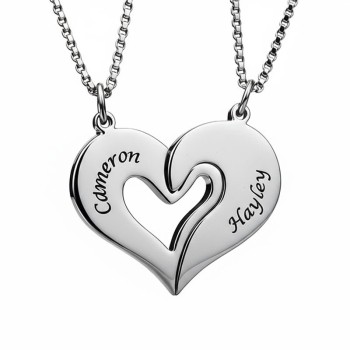 Breakable Heart Name Necklace for Couples Silver