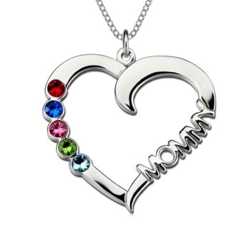 Engraved Heart Mother Birthstones Necklace