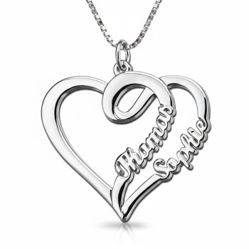 Honor your infinite love with this stylish couple's necklace. This necklace hangs from a box chain and can be set with two names of your choice to be set on either side of the infinity symbol.